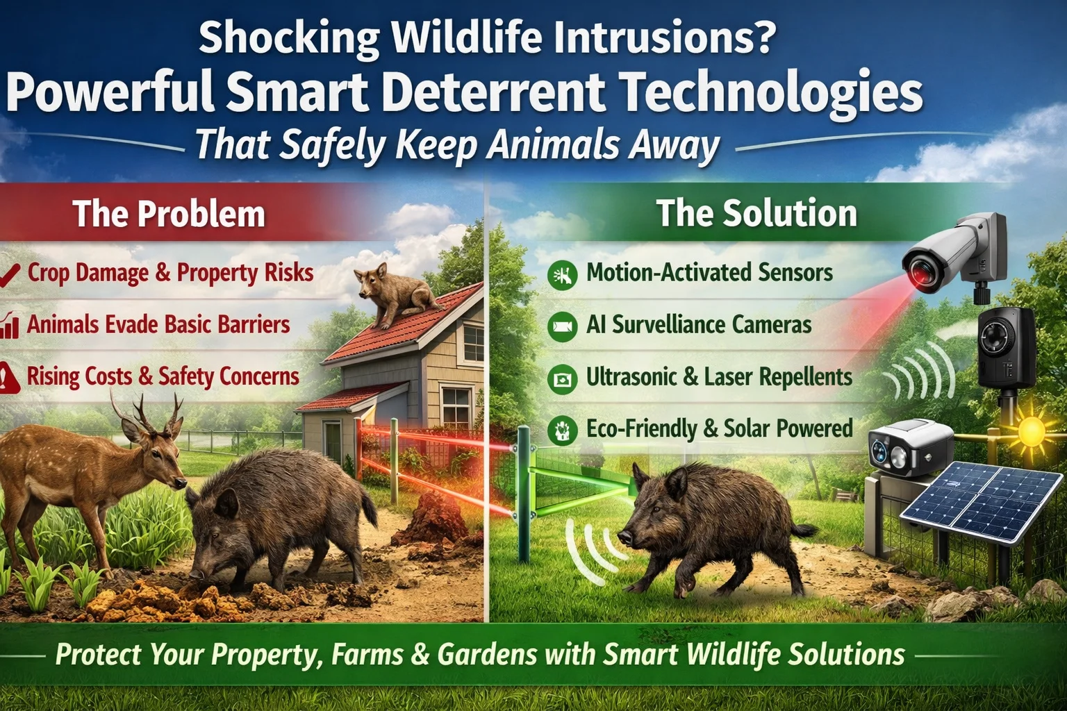 farm animals pet accessories pet activity Shocking Wildlife Intrusions? Powerful Smart Deterrent Technologies That Safely Keep Animals Away aaiby Apr 7, 2026 0 🐾 Introduction Wildlife intrusions are becoming a serious and growing problem for homeowners, farmers, and property managers. Animals like deer,… Read More
