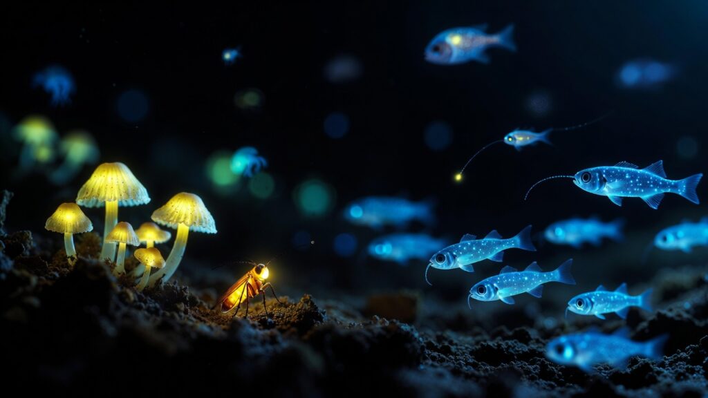 Imagine walking through a dense forest at midnight and spotting a faint, eerie green light pulsing from a fallen log. You move closer, and there, nestled among decaying wood, a mushroom glows like a fragment of the night sky fallen to earth. Or picture diving into the ocean’s depths, surrounded by darkness so complete it feels like space—until a wave of blue light erupts around you as fish scatter like living fireworks.